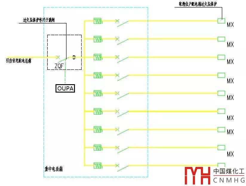 對于三相電源進(jìn)線變?yōu)閱蜗嗷芈烦鼍€,同時(shí)為三相負(fù)荷供電(即具有三相回路出線)的配電箱,也可將OUPA設(shè)置在該配電箱的進(jìn)線處。
