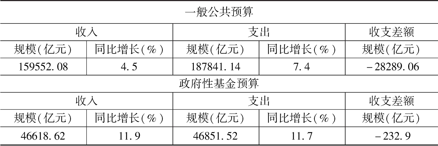 從預(yù)算的完成情況來看,全國一般公共預(yù)算收支分別為預(yù)算的101.05%和103.9%,其中,中央收支分別為調(diào)整預(yù)算[1]的100%和99.1%,地方本級收支分別為預(yù)算的100.7%和105%;全國政府性基金預(yù)算收支分別為預(yù)算的125.4%和113.1%,其中,中央收支分別為預(yù)算的97.8%和88.5%,地方本級收支分別為預(yù)算的129%和115.6%;全國國有資本經(jīng)營預(yù)算收支分別為預(yù)算的113.4%和96.1%,其中,中央收支分別為預(yù)算的102.2%和93.5%,地方本級收支分別為預(yù)算的130%和115.6%;全國社會(huì)保險(xiǎn)基金預(yù)算收支分別為預(yù)算的102.4%和100.9%[2]。