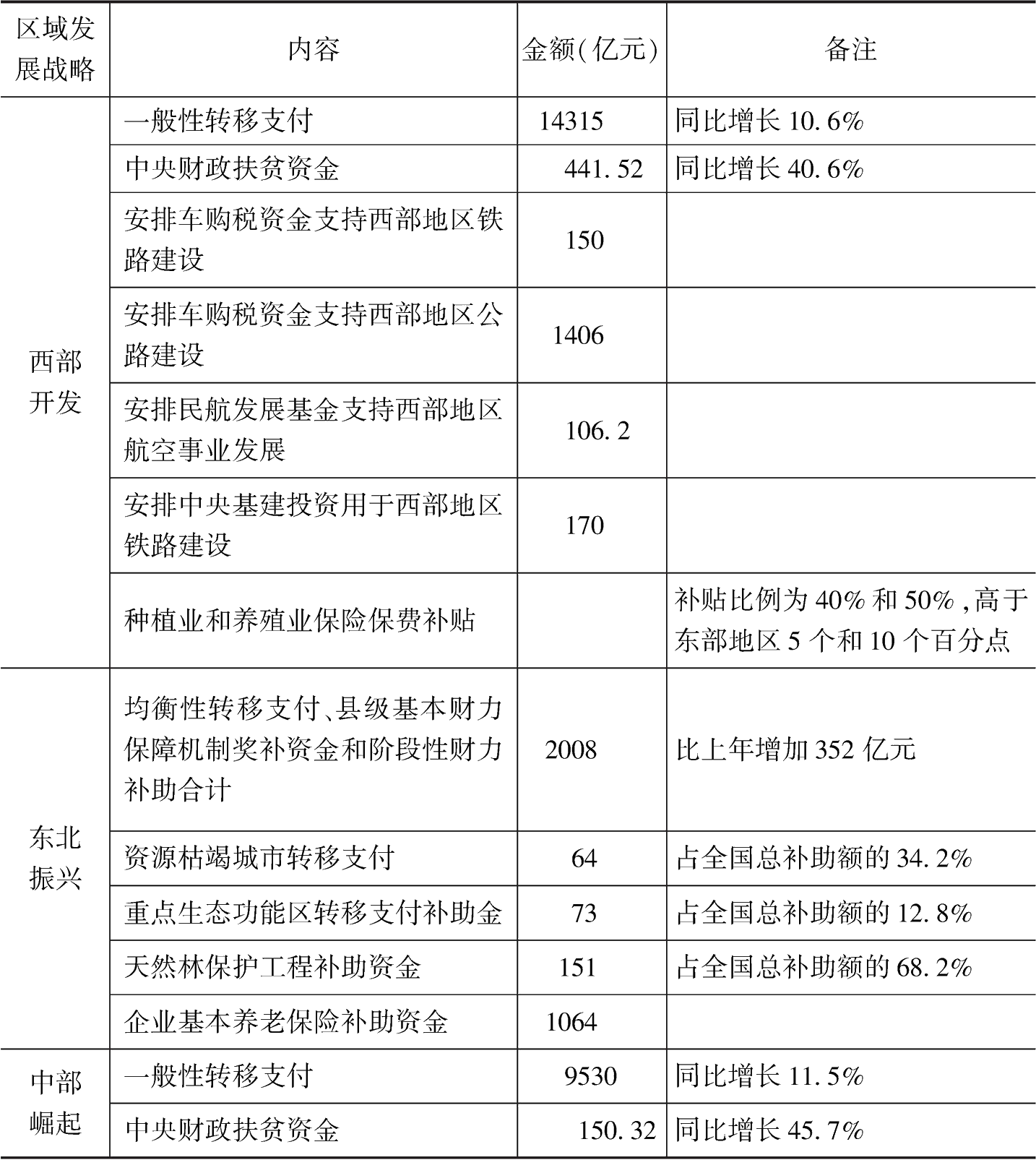 表2 2016年中央財(cái)政區(qū)域性支出情況