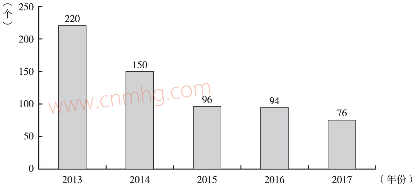 圖6 2013~2017年我國專項(xiàng)轉(zhuǎn)移支付數(shù)量