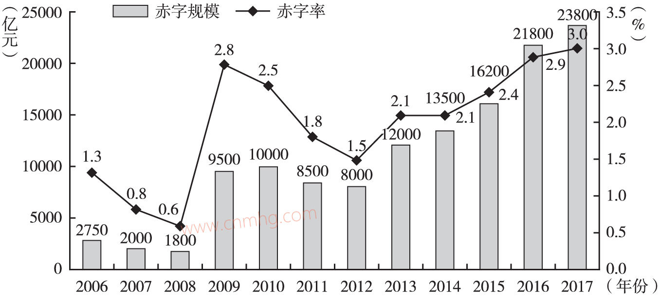 圖4 2006~2017年我國一般公共預(yù)算赤字規(guī)模與赤字率變動(dòng)趨勢