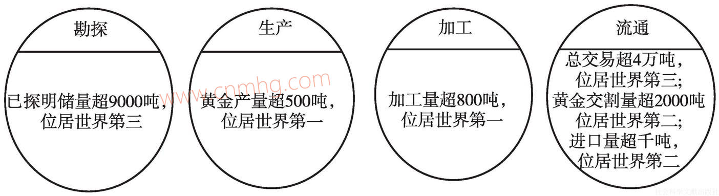 圖12 我國(guó)黃金產(chǎn)業(yè)鏈現(xiàn)狀示意