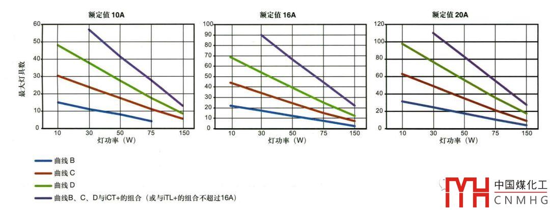 施耐德公司研發(fā)出出過零閉合可控接觸器,可以滿足LED燈回路的保護與控制。如圖3中iTC+、iTL+所示,其與斷路器MCB配合使用,此時MCB不需要降容使用,否則必須降容,降容系數(shù)從圖3中曲線得出。