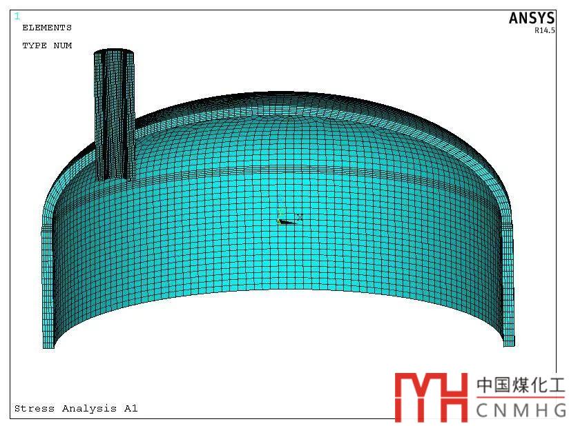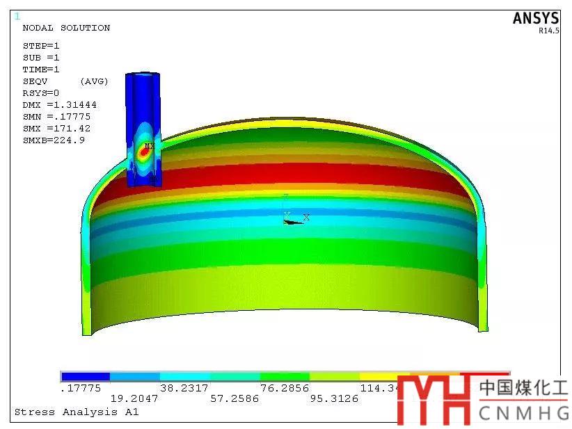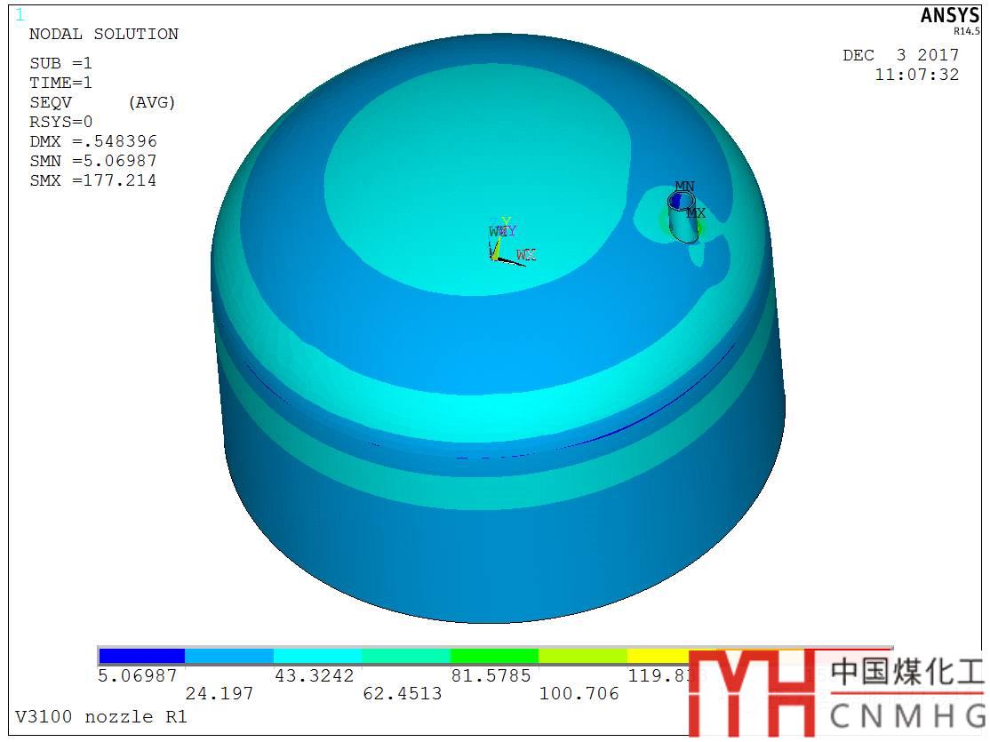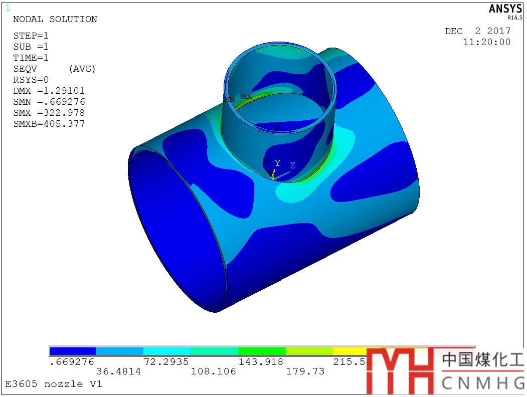 3. 封頭過渡區(qū)上開一個孔內(nèi)外壓+管口載荷