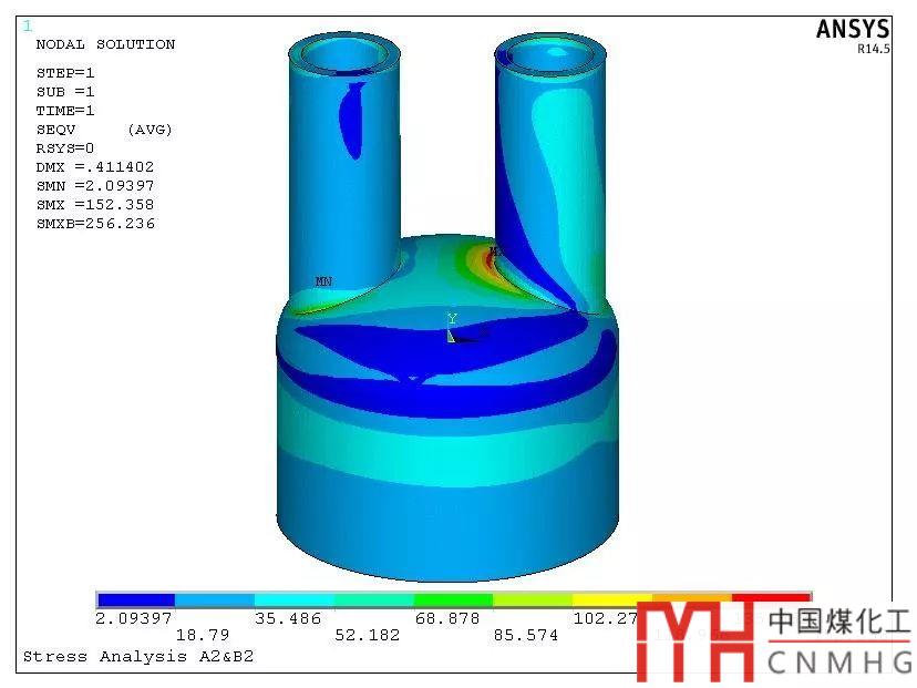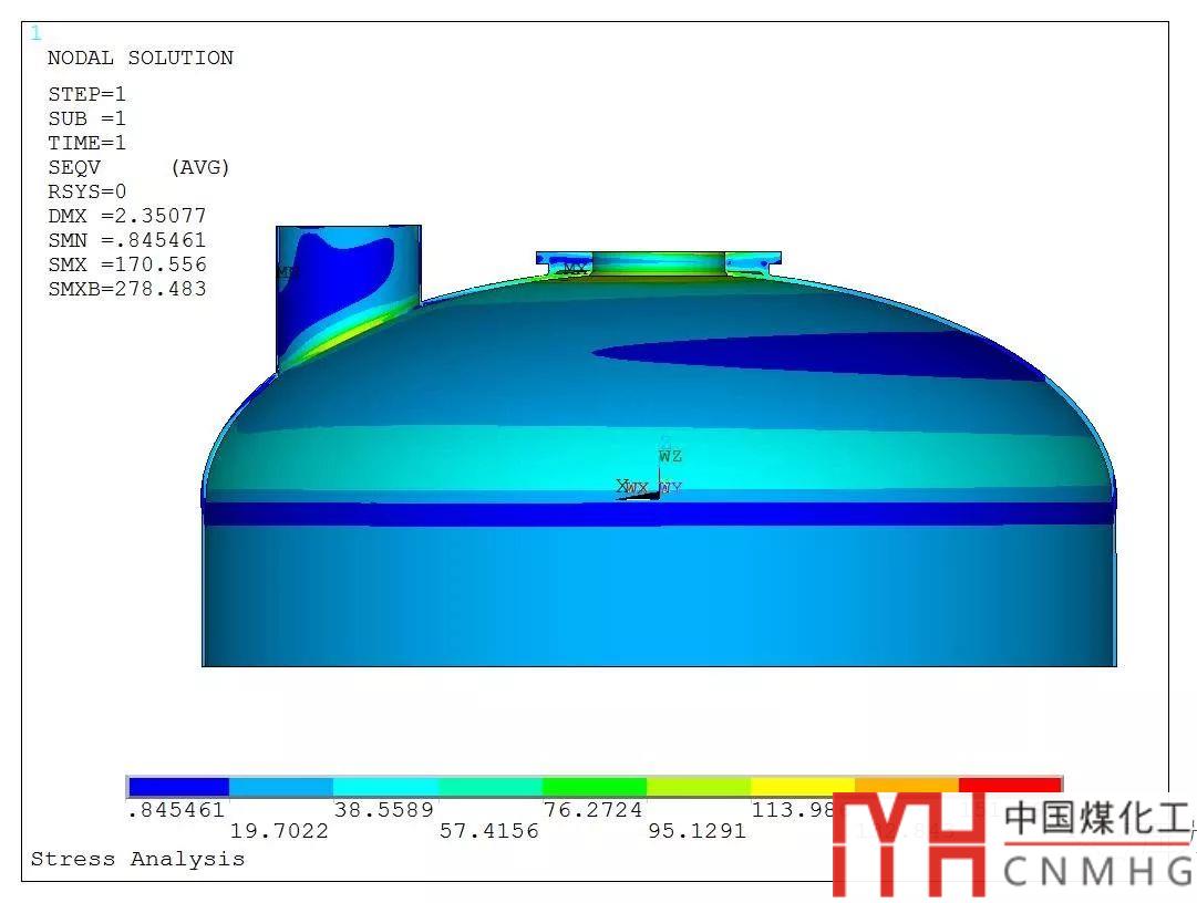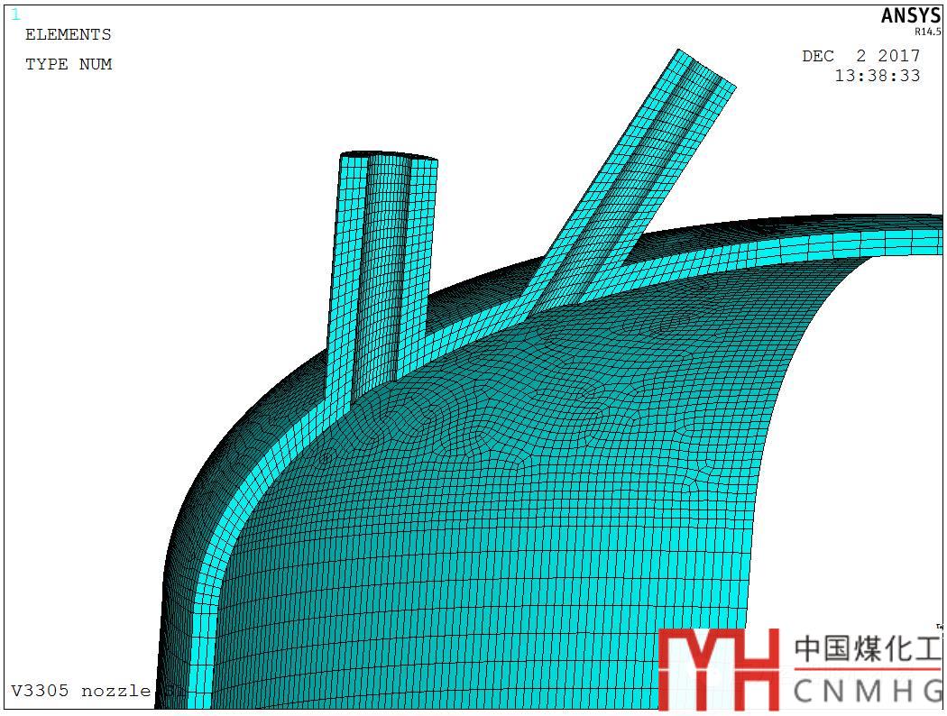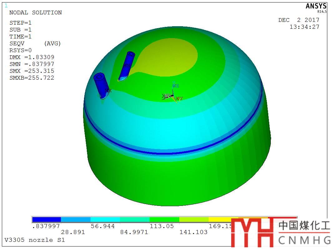 6. 封頭過渡區(qū)上開2個孔內(nèi)外壓+管口載荷