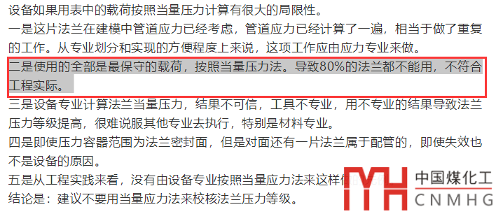 我們?cè)瓉碜鲞^比較,拿著工程公司的管道載荷,當(dāng)量壓力直接超過法蘭的MAWP?,F(xiàn)在按這么大的比例提高了法蘭的當(dāng)量MAWP,總算解決了第二條問題。
