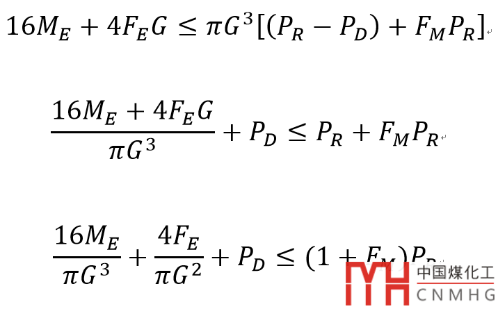 不等式左邊:將彎矩ME和軸向拉力FE折算成當(dāng)量?jī)?nèi)壓再加上PD(設(shè)備的MAWP),即當(dāng)量壓力。