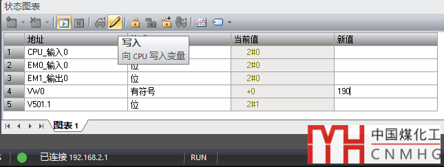 這樣,VW0的值就會被修改成190 ,如下圖所示: