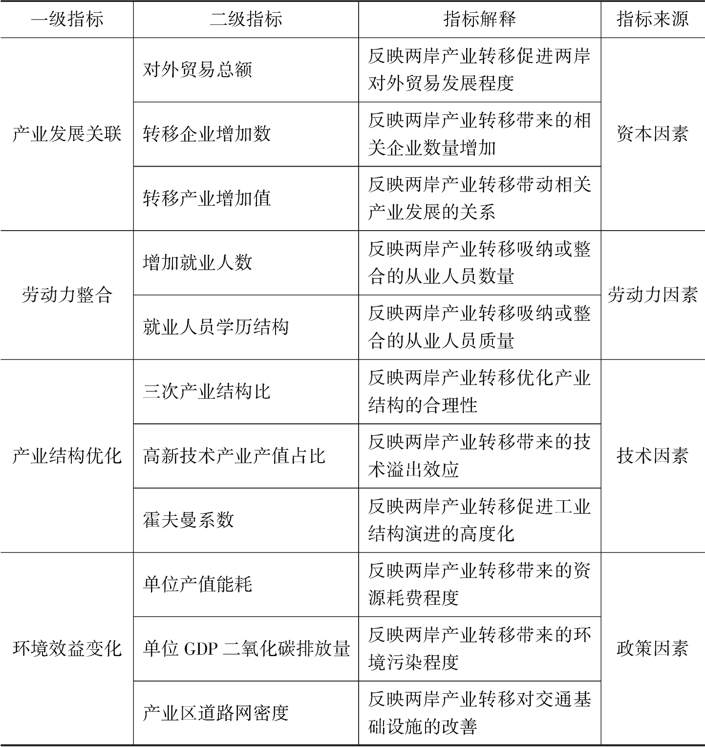 表2-2 兩岸產(chǎn)業(yè)轉(zhuǎn)移效應(yīng)評價指標體系