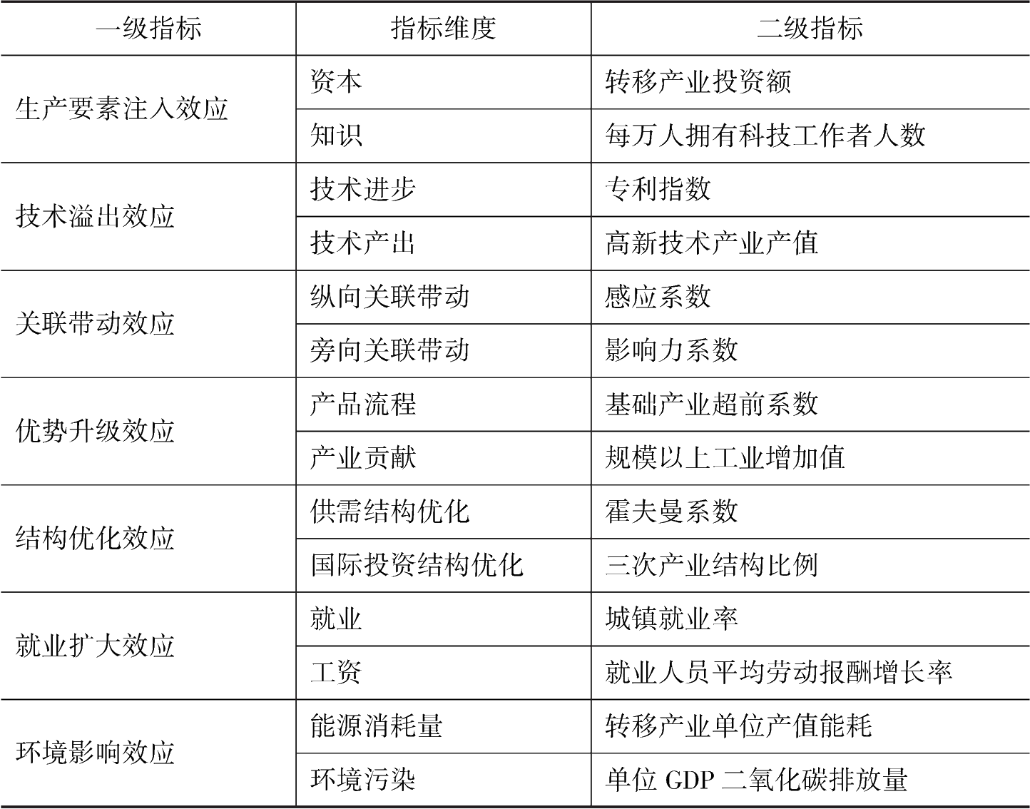 表2-1 區(qū)域產(chǎn)業(yè)轉(zhuǎn)移效應(yīng)評價指標體系