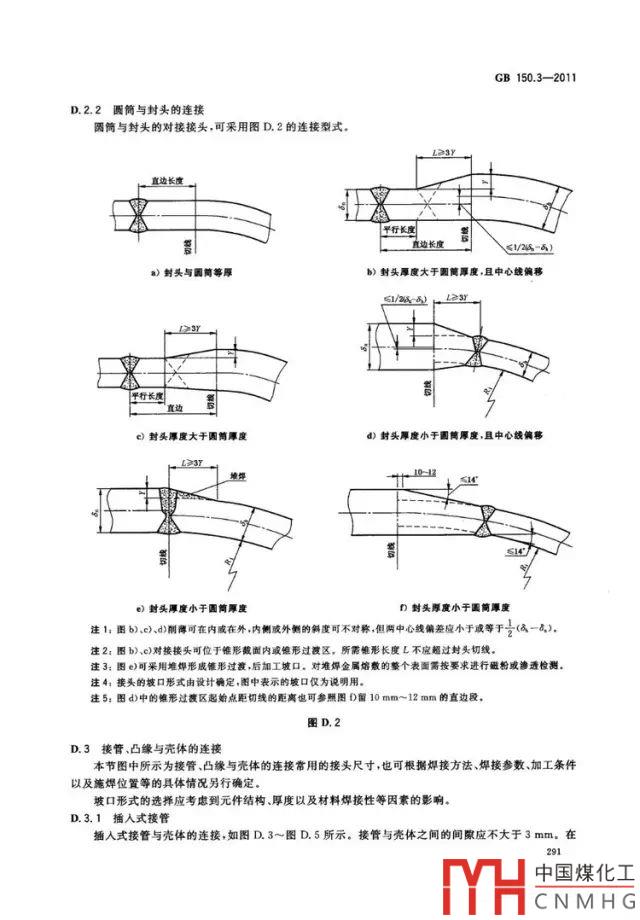 在GB150和ASME中都對(duì)封頭和筒體連接的焊接節(jié)點(diǎn)進(jìn)行規(guī)定,詳見如下圖: