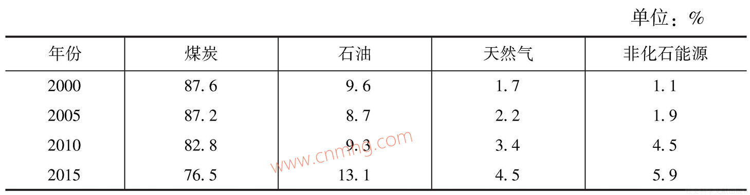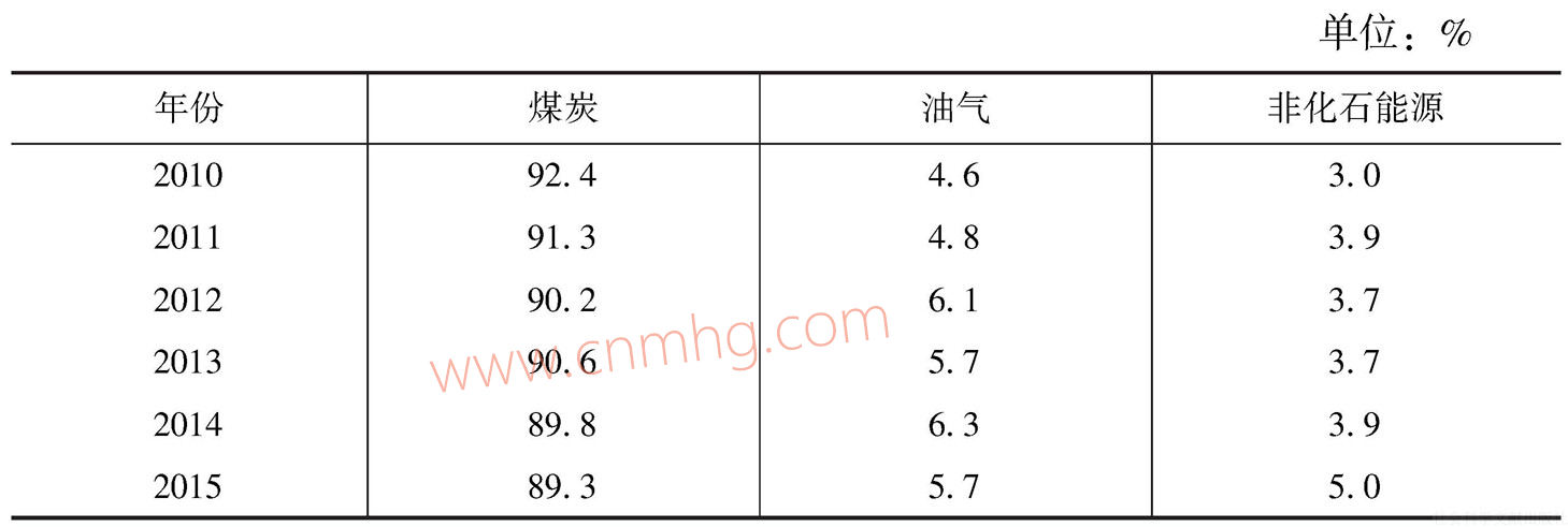 2.煤炭在能源生產(chǎn)結(jié)構(gòu)中一直保持較高水平