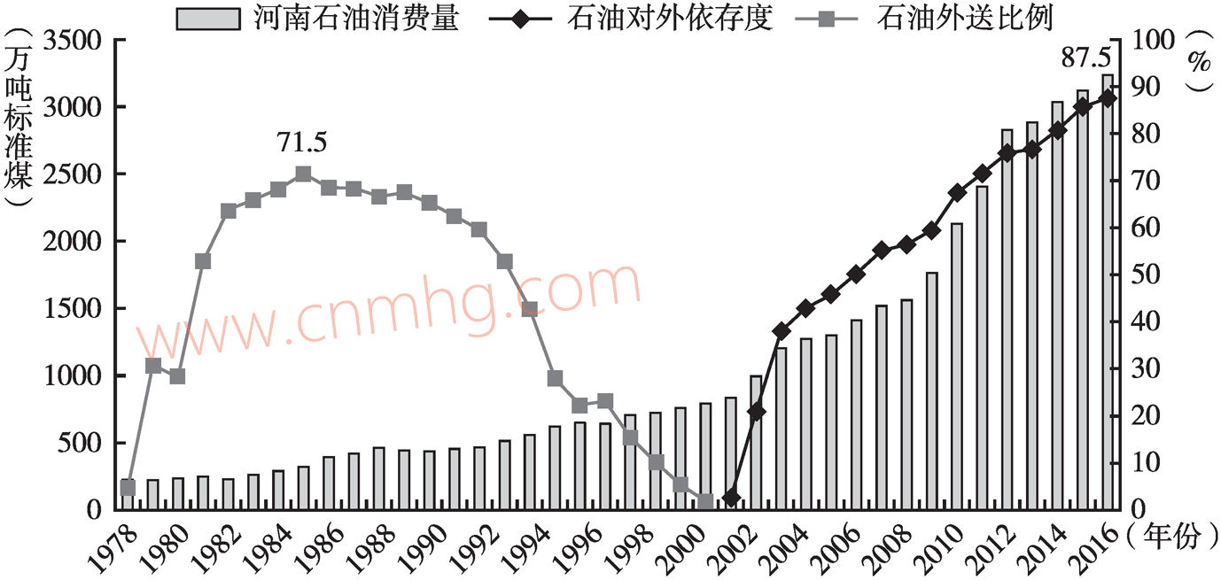 經(jīng)過40年的發(fā)展,河南省石油工業(yè)供應(yīng)經(jīng)歷了“自給自足-外送-平衡-輸入-以輸入為主”的過程,現(xiàn)已逐步形成生產(chǎn)與外引并舉的油品供應(yīng)體系。