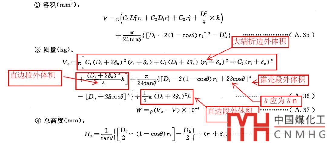 此處可以看到直邊段外體積計(jì)算了2次,重復(fù)了很大一部分重量。所以A.36應(yīng)該刪除一個(gè) 1/4pi(Di+2δ)^2h,且δ應(yīng)為δn.