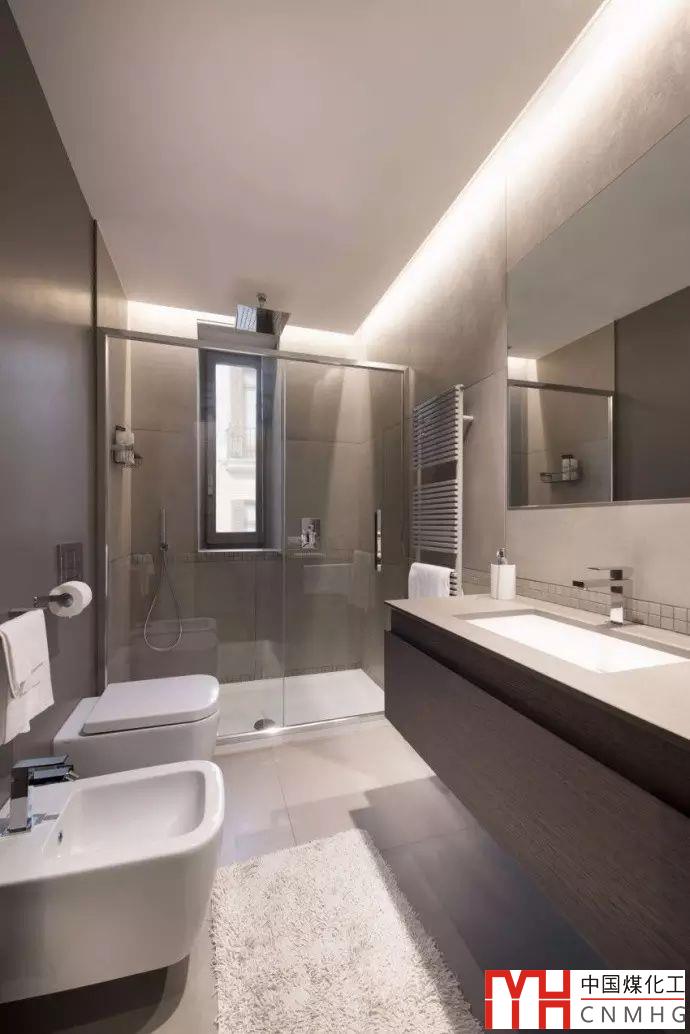 衛(wèi)生間的照明與其他場所的照明風格統(tǒng)一,與裝修比較協(xié)調(diào)。看來設計師追求幽靜、舒適的光環(huán)境。但就功能而言,鏡前照明是不可或缺的,但圖中尚未發(fā)現(xiàn)此處的照明。