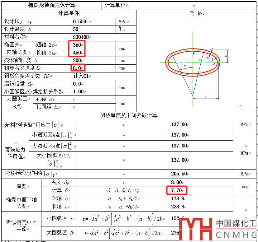 用0.55MPa生成一下S30408材料的450*350橢圓筒節(jié)的計算書,