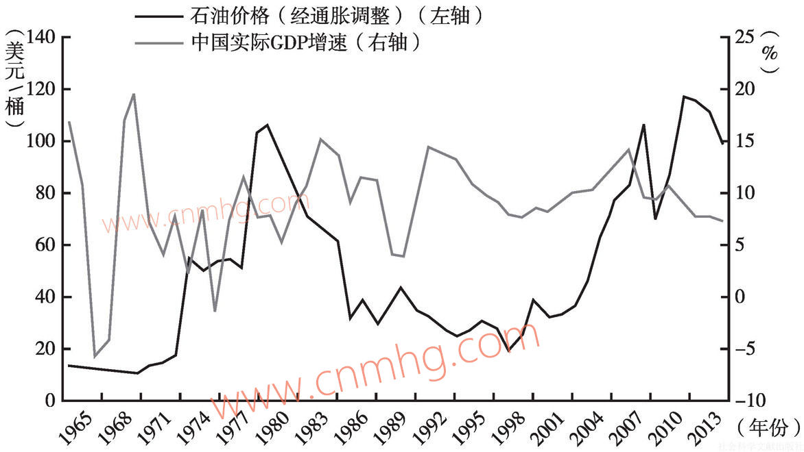 圖3.13 中國經(jīng)濟(jì)增速與國際市場石油價(jià)格