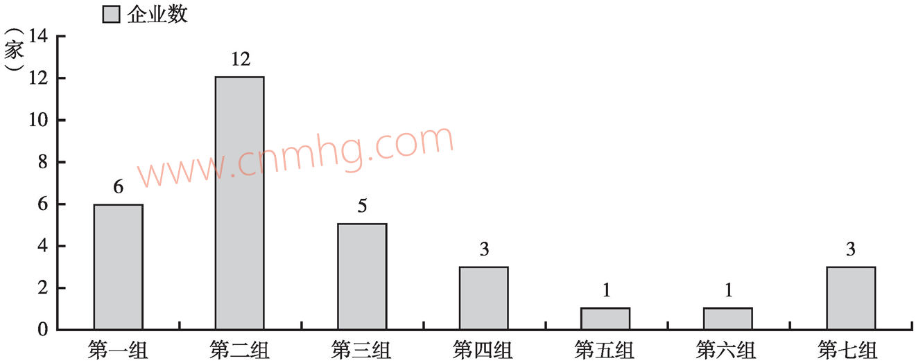 這一組企業(yè)的突出優(yōu)勢較為分散。其中,以規(guī)模競爭力取勝的企業(yè)25家,以效率競爭力取勝的企業(yè)16家,以增長競爭力取勝的企業(yè)18家。有部分企業(yè)在某一方面的競爭力十分突出,但另外兩方面差距較大,導(dǎo)致反映綜合情況的基礎(chǔ)競爭力排名居后。