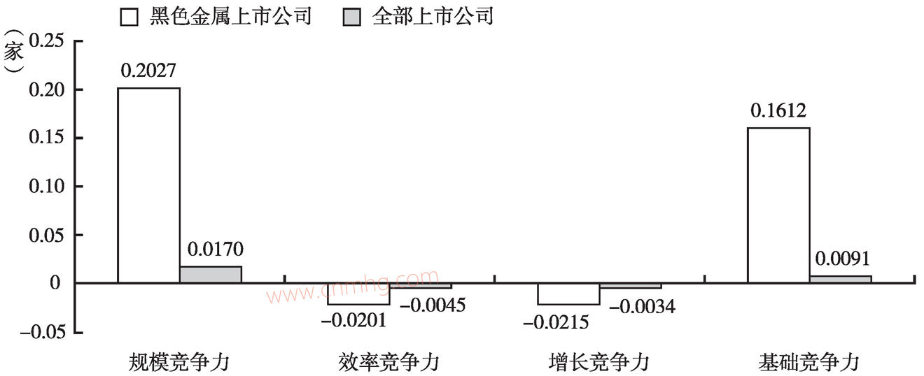圖3-7 2010年黑色金屬行業(yè)上市公司與全部上市公司競爭力得分平均值