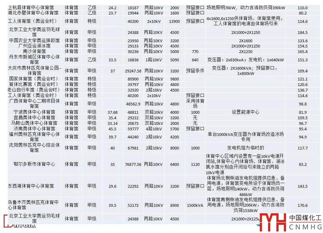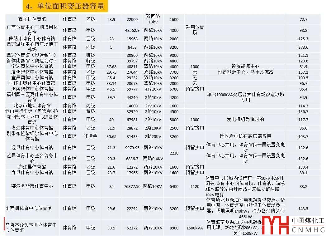 體育建筑變壓器安裝容量調(diào)研數(shù)據(jù)——平均單位面積變壓器容量: