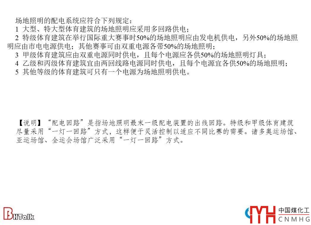 5 其他等級的體育建筑可只有一個電源為場地照明供電。
