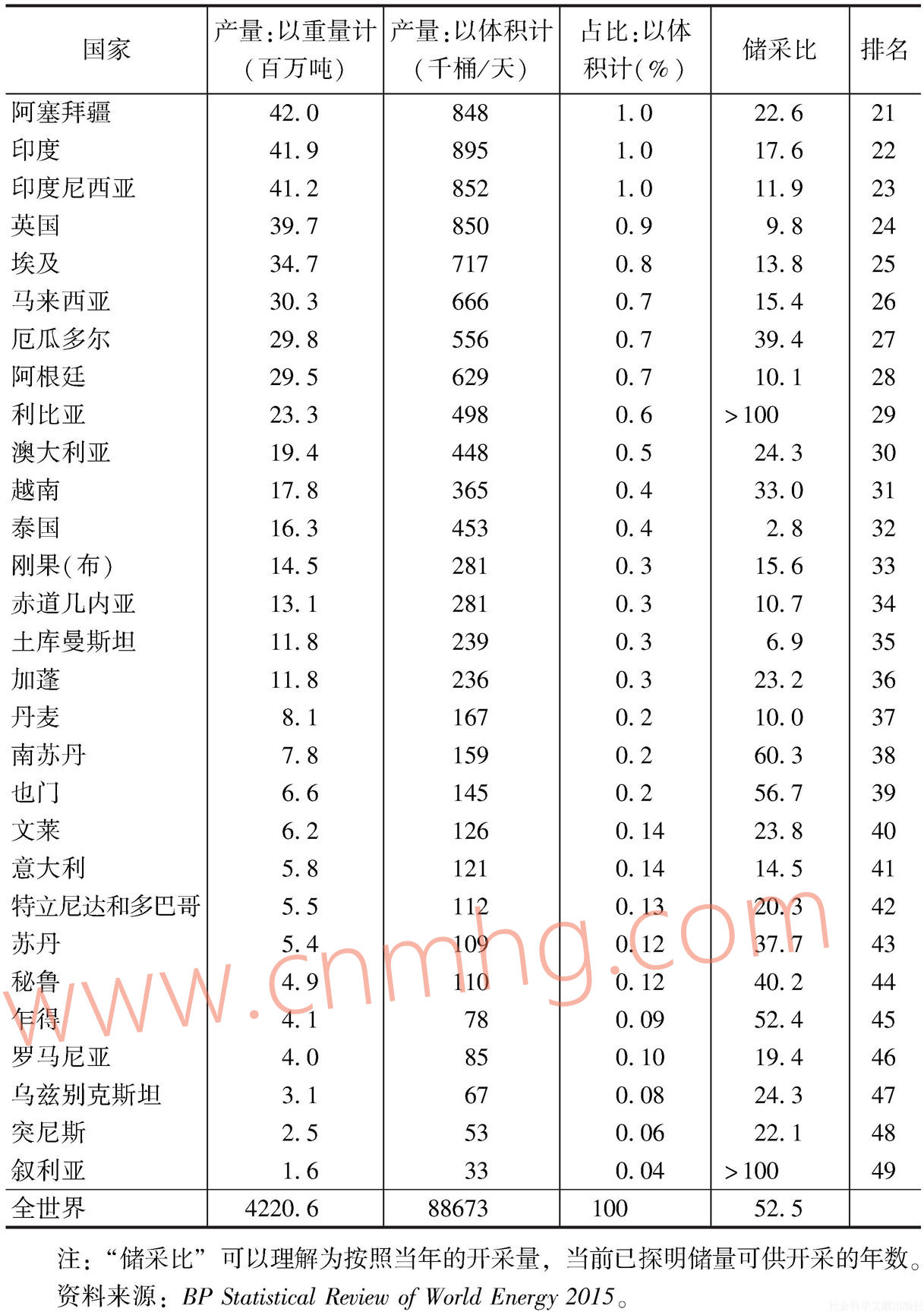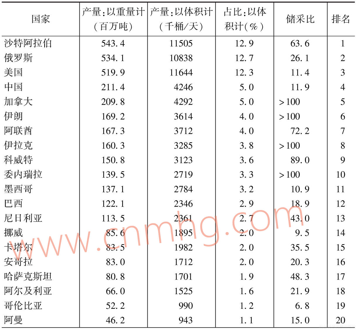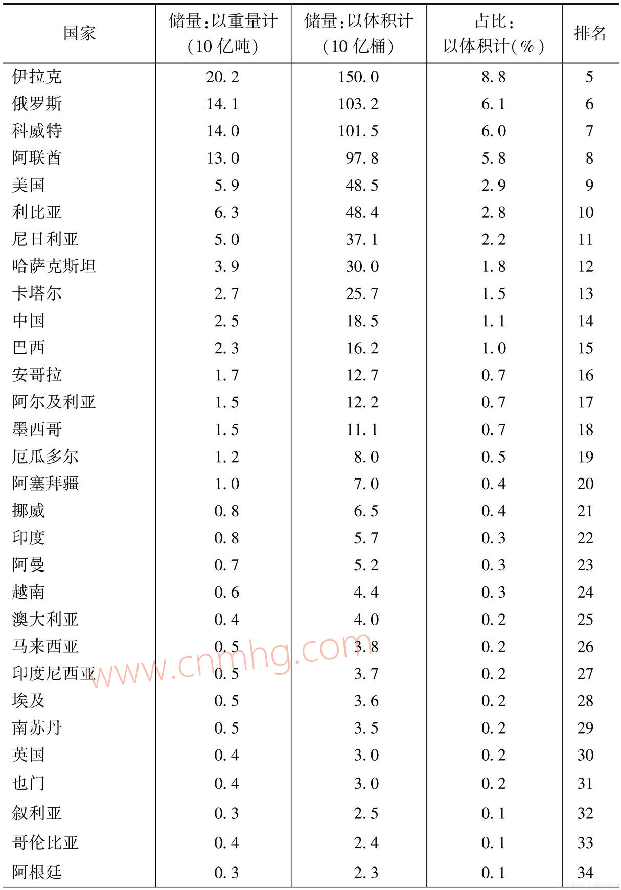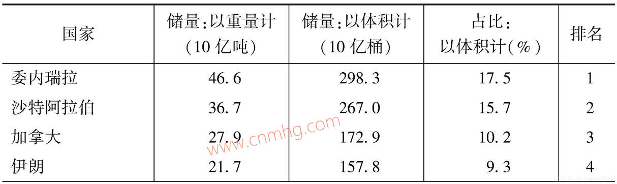 表1.1 石油已探明儲(chǔ)量國(guó)家排名-續(xù)表1