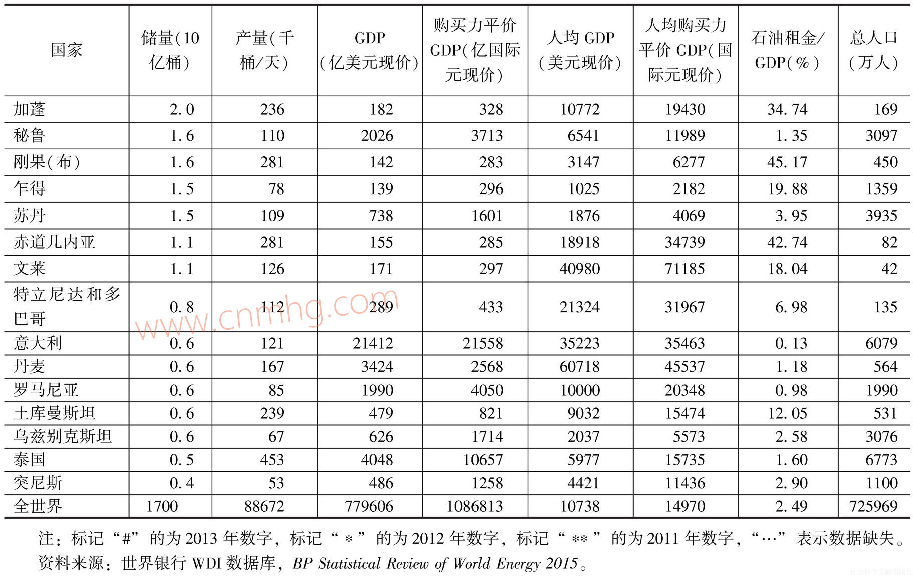 例如,伊朗和加拿大是一對(duì)典型的例子,這兩個(gè)國(guó)家的石油儲(chǔ)量大致相同,但2014年伊朗的人均GDP僅為5443美元,只有全球平均水平的一半左右;而加拿大的人均GDP則高達(dá)50231美元,是全球平均水平的將近5倍(見(jiàn)表1.3)。