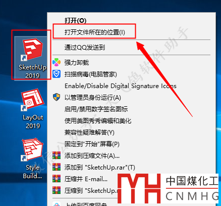鼠標右擊【SketchUp 2019】軟件圖標選擇【打開文件所在的位置】。