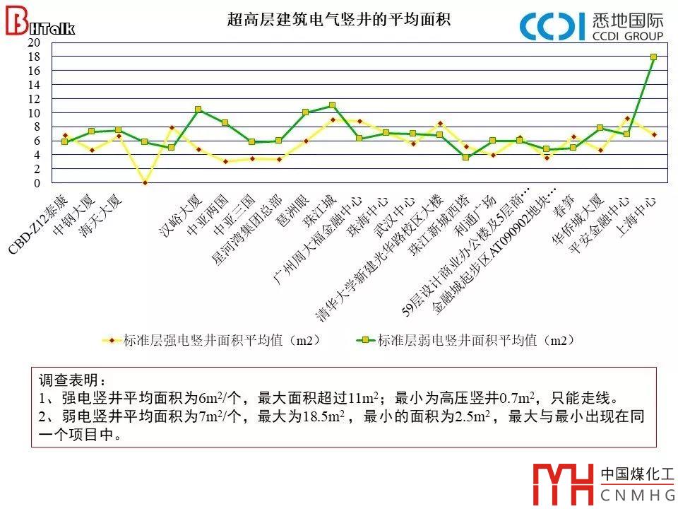 ü強(qiáng)電豎井平均面積為6m2/個,最大面積超過11m2;最小為高壓豎井0.7m2,只能走線;
