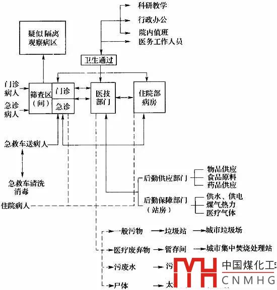 傳染病醫(yī)院核心是醫(yī)院工藝流程,按照傳染病醫(yī)院潔污分區(qū)與分流的原則。綜合醫(yī)院內(nèi)傳染病區(qū)的基本流程也遵守此原則。