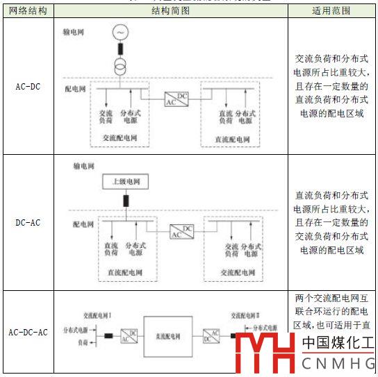如上所述,現(xiàn)階段直流系統(tǒng)不可能替代交流系統(tǒng),也沒(méi)有必要替代交流系統(tǒng)。直流系統(tǒng)的應(yīng)用應(yīng)根據(jù)負(fù)荷特性、分布式能源情況合理的、局部采用直流系統(tǒng)。因此交直流混合系統(tǒng)是當(dāng)前的現(xiàn)實(shí)應(yīng)用。表6是典型交直流混合系統(tǒng)的類型及適用范圍,其他交直流混合系統(tǒng)的網(wǎng)絡(luò)拓?fù)浣Y(jié)構(gòu)可以在表中3種典型結(jié)構(gòu)的基礎(chǔ)上進(jìn)行有機(jī)的組合。