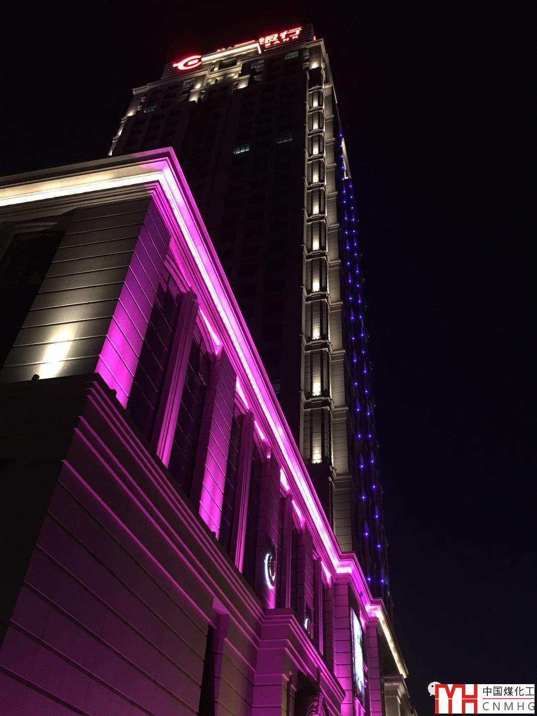 但是,到了晚上就讓人咋舌,立面照明的上部采用了點(diǎn)光源的藍(lán)色光,雖然感覺(jué)有點(diǎn)不合適, 但沒(méi)有到令人反感的地步。下部群房采用粉色光照明,讓人不好理解!單獨(dú)使用粉色光是非常少見(jiàn)的照明效果,設(shè)計(jì)者想表達(dá)什么含義呢?百思不得其解!使用粉色光是非常慎重的事情,上網(wǎng)查了查粉色的含義讓人大吃一驚,與這種類(lèi)型的建筑很不匹配。