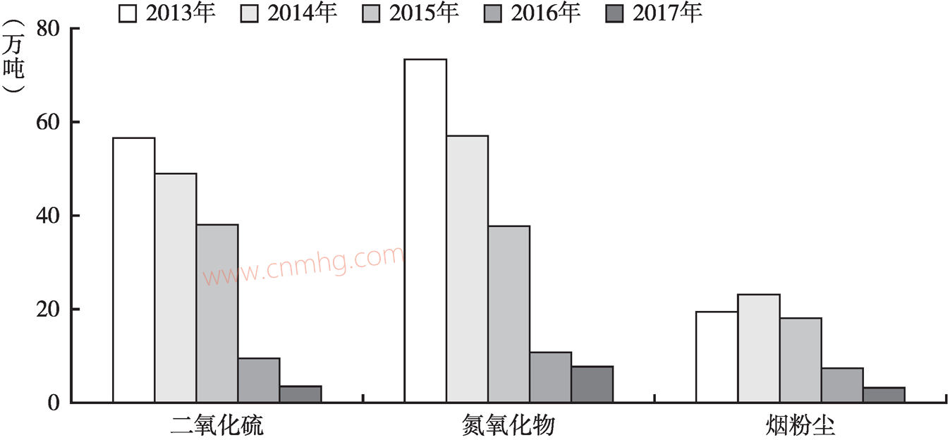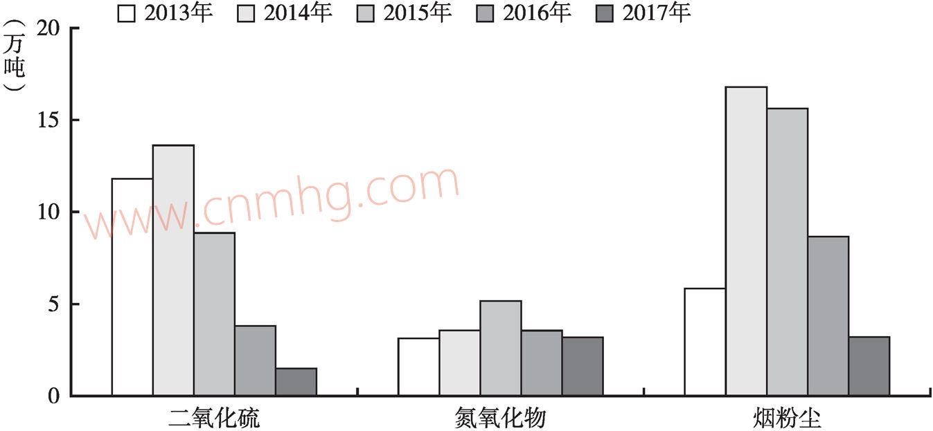 圖14 2013~2017年河南省火電行業(yè)主要污染物排放情況