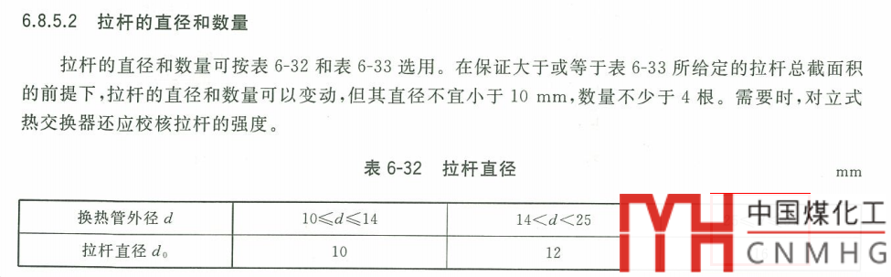 小直徑的設(shè)備可以按照TEMA取拉桿的數(shù)量和直徑。