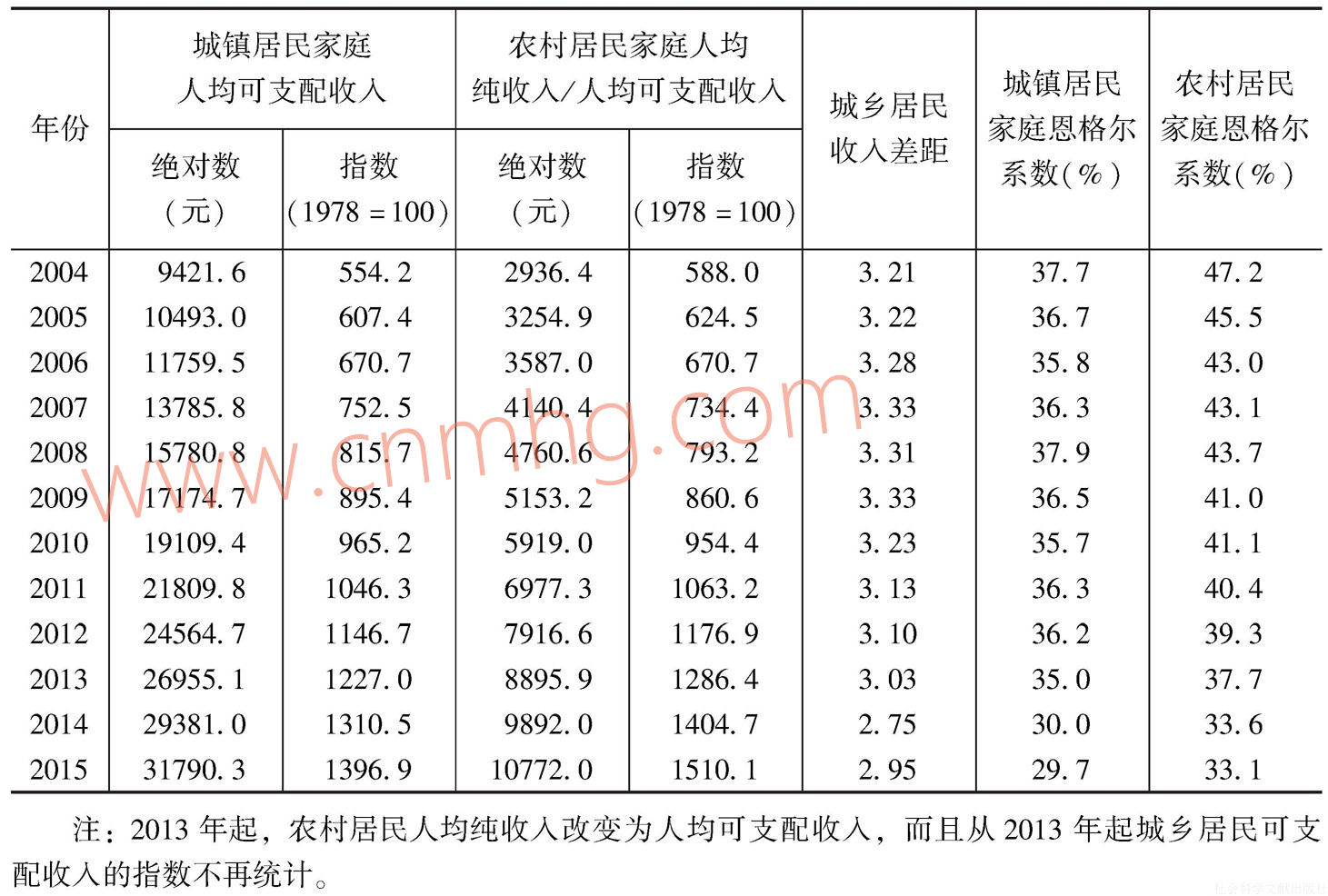 表9 城鄉(xiāng)居民家庭人均收入及恩格爾系數(shù)