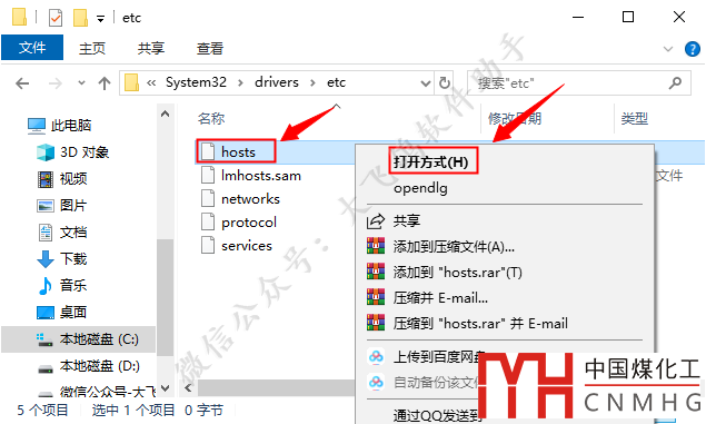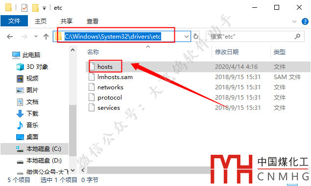 打開路徑C:WindowsSystem32driversetc,選擇【hosts】文件