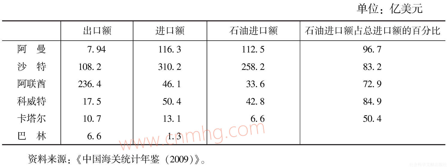表1 2008年中國(guó)與海合會(huì)國(guó)家的貿(mào)易