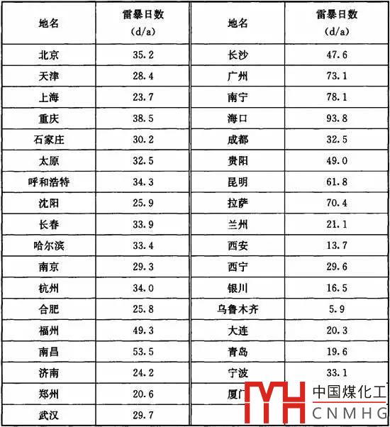 圖2全國主要城市年平均雷暴日數(shù)統(tǒng)計(jì)表