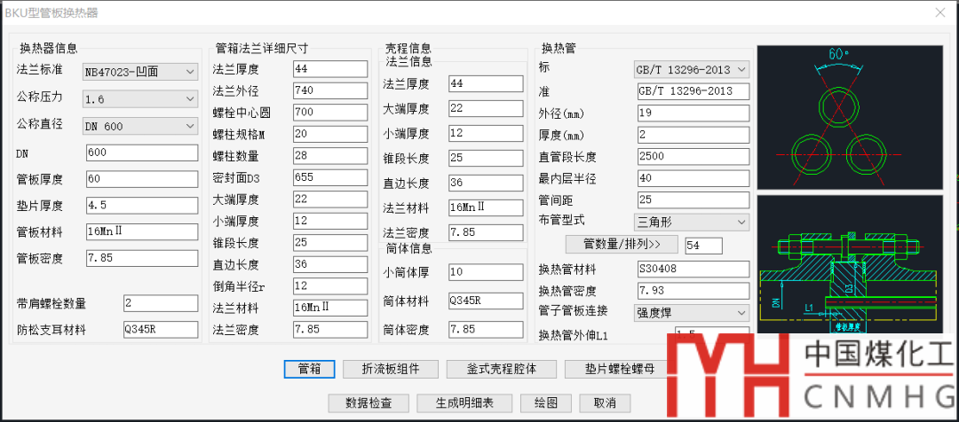 VCAD可以直接按比例生成BEM和BEU的很大一部分圖紙,為做換熱器設(shè)計節(jié)省了大量的時間。配合其他的一些功能,做換熱器設(shè)計是非常迅速的。