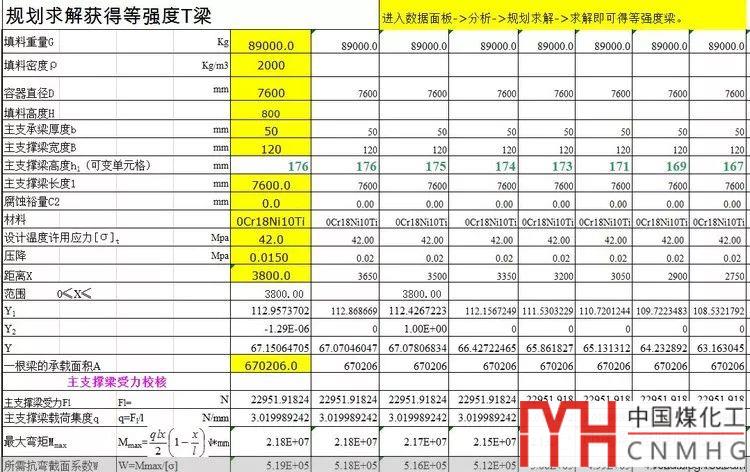 然后可以使用excel中的線性規(guī)劃計(jì)算等強(qiáng)度梁的輪廓線。