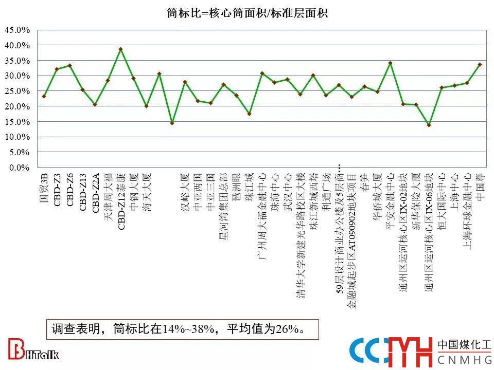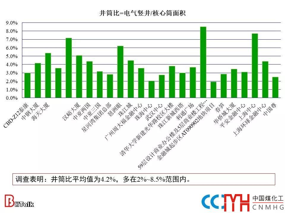 超高層建筑的核心筒和電氣豎井統(tǒng)計(jì)數(shù)據(jù)表明:
