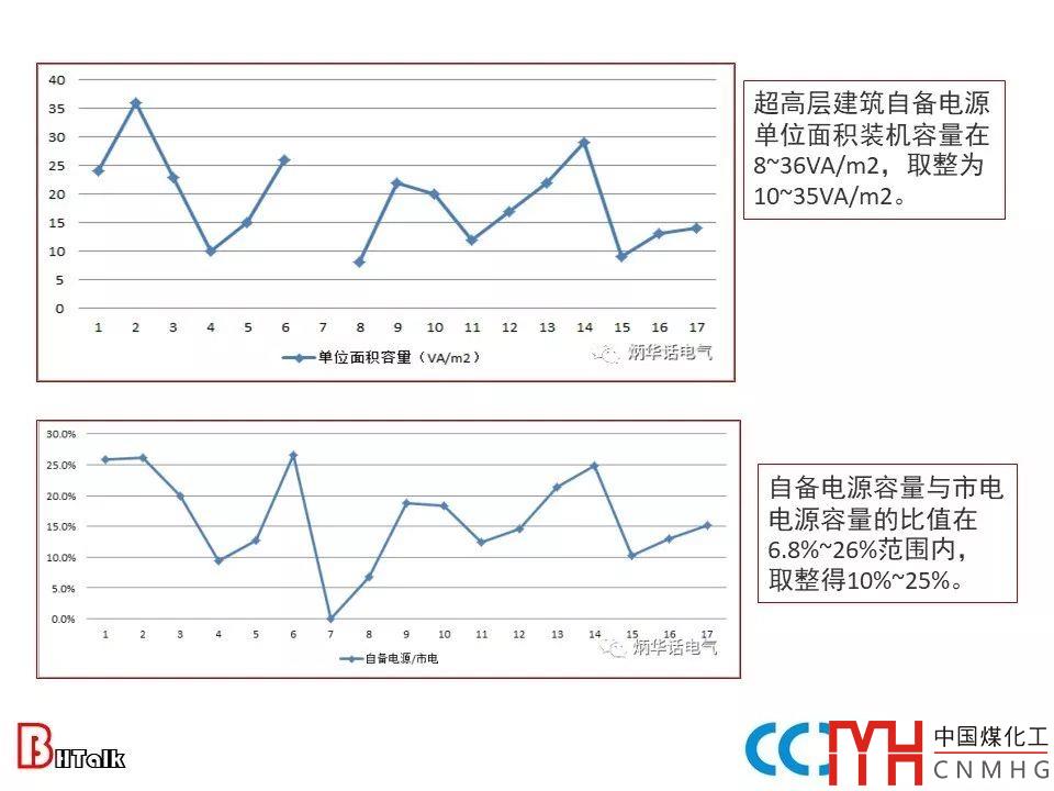 超高層建筑自備電源單位面積裝機(jī)容量可取10~35VA/m2,自備電源容量與市電電源容量的比值多在10%~25%;