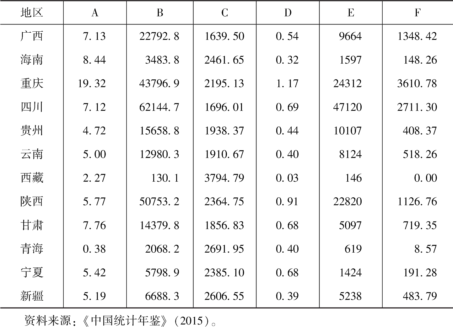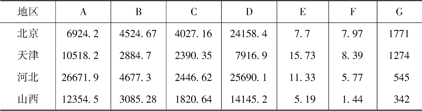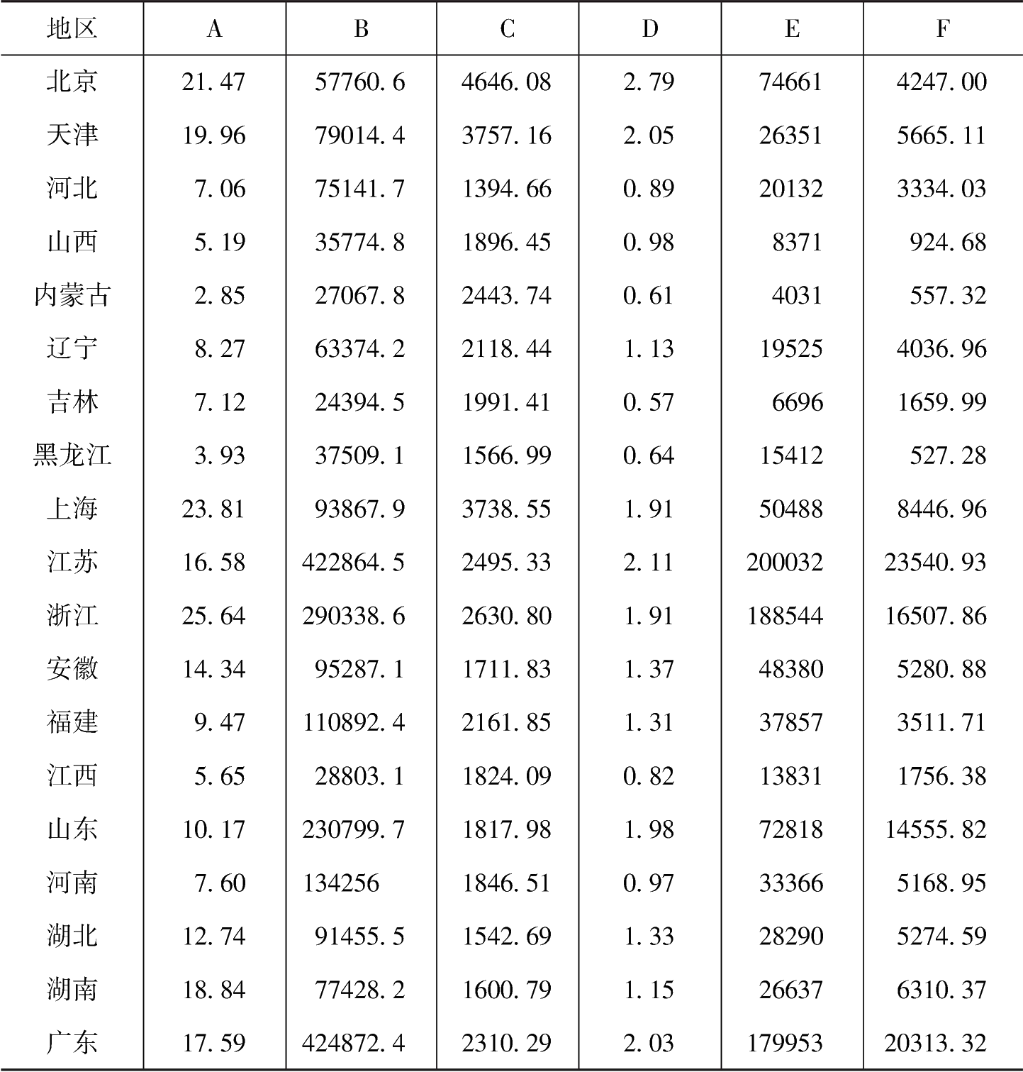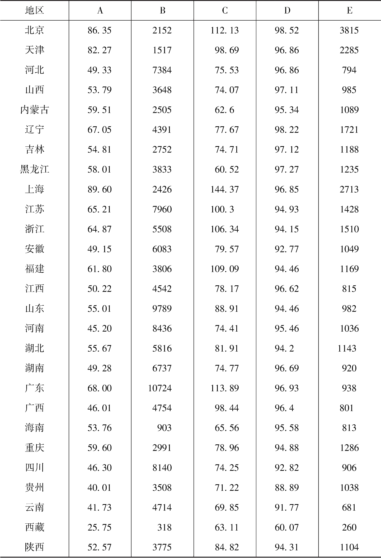 B、C、D三個(gè)指標(biāo)由于數(shù)據(jù)來源的限制,只分別選取規(guī)模以上工業(yè)企業(yè)的數(shù)值。表5-7為我國(guó)31個(gè)地區(qū)技術(shù)要素匯總。