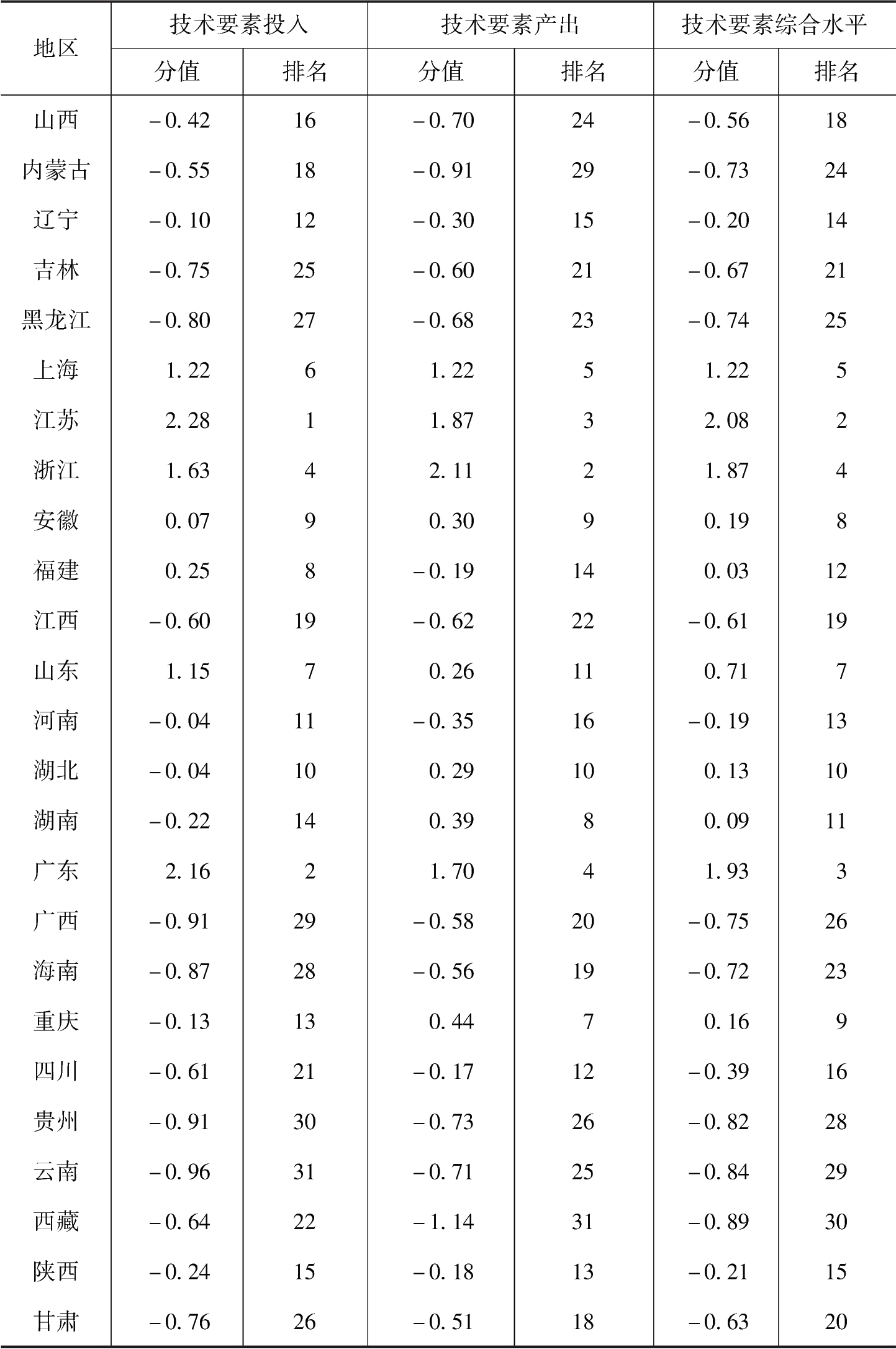 表5-8 我國(guó)31個(gè)地區(qū)技術(shù)要素綜合比較