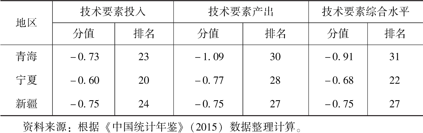 表5-8 我國(guó)31個(gè)地區(qū)技術(shù)要素綜合比較-續(xù)表2