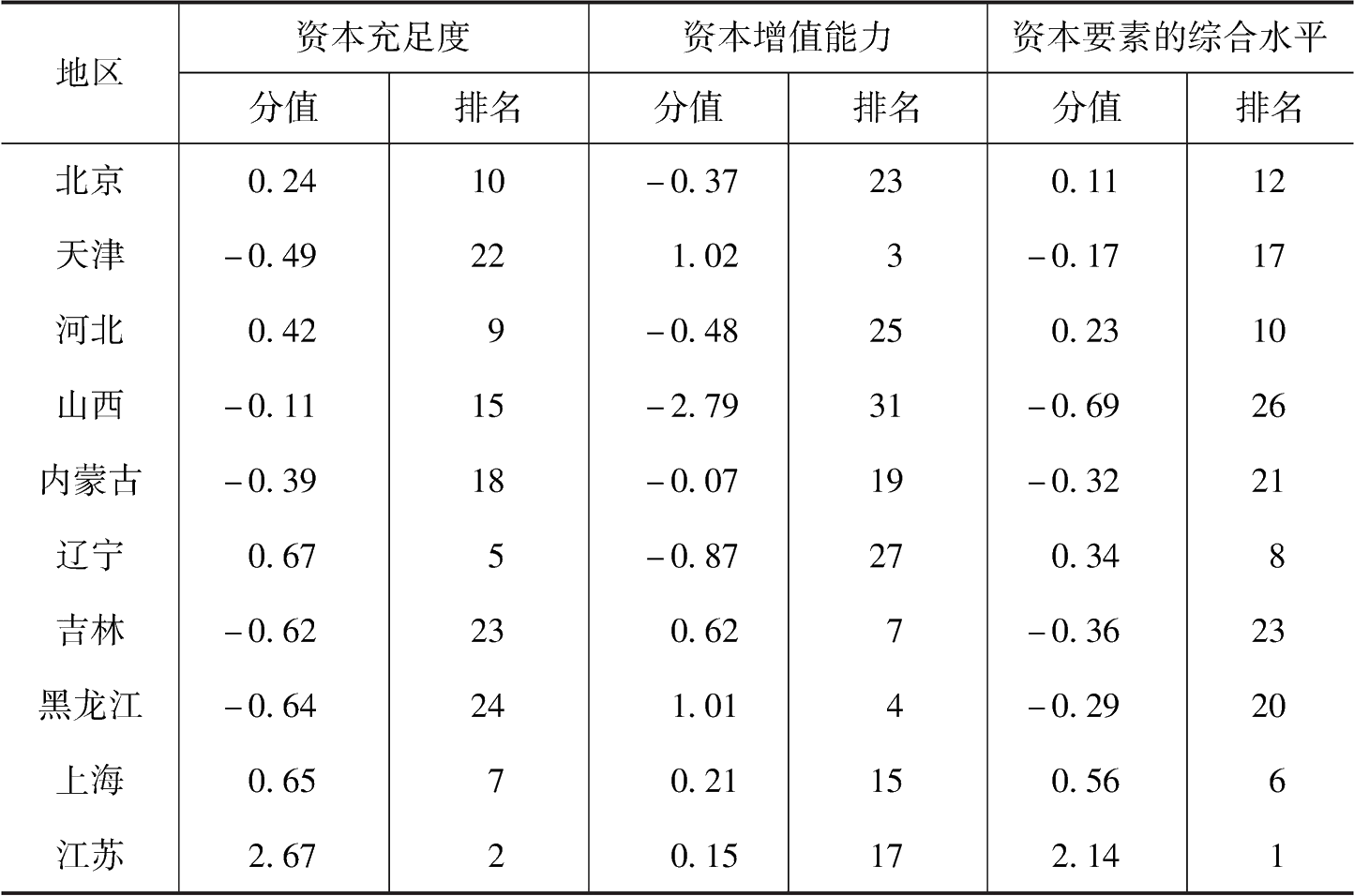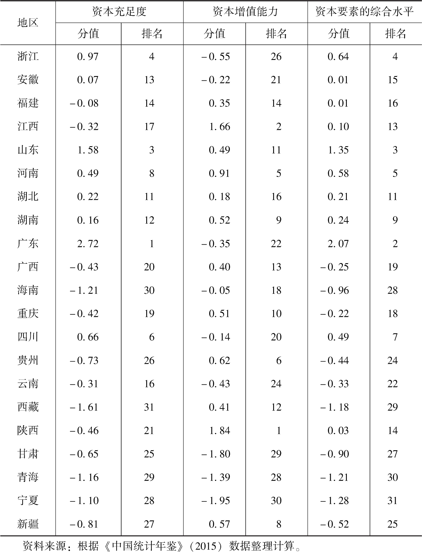 表5-4 我國(guó)31個(gè)地區(qū)資本要素綜合比較