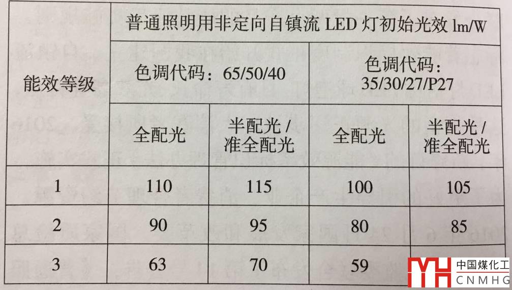 選用時(shí)推薦采用能效等級(jí)高的LED球泡燈,等級(jí)3是最低要求,必需滿足。該表適用于額定功率2W~60W、額定電壓220V、額定頻率50Hz的LED球泡燈。