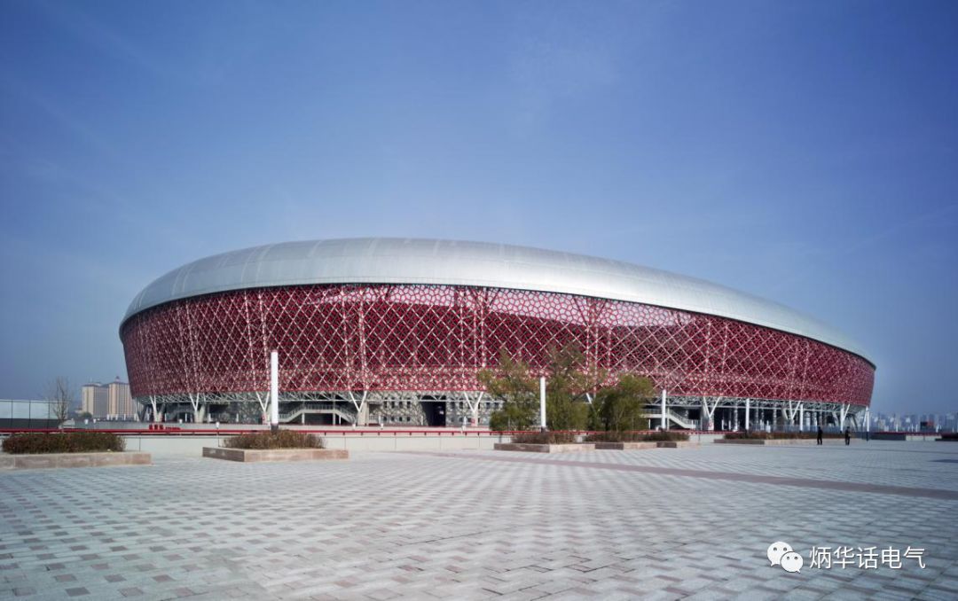 山西體育場采用2路10kV電源進線,變壓器總裝機容量為9860kVA,折合109.5VA/m2,沒有設(shè)固定的柴油發(fā)電機組,但留有臨時柴油發(fā)電機組接口。