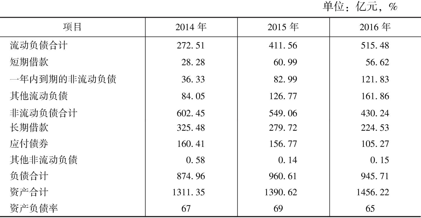 兗州煤業(yè)作為兗礦集團的上市公司,是進行資本運作的重要平臺,兗州煤業(yè)的負債率和債務情況,對兗礦集團具有深遠影響。據統(tǒng)計,兗州煤業(yè)2014年末、2015年末及2016年末,負債總額分別為874.96億元、960.61億元和945.71億元,資產負債率分別為67%、69%和65%(見表1)。