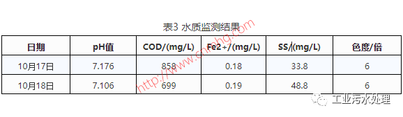 3. 運(yùn)行費(fèi)用3.36元/t水。其中藥劑費(fèi)2.01元/t水,電費(fèi)0.69元/t水,人工費(fèi)0.66元/t水。通過出水回用,企業(yè)每天可節(jié)約用水140m3,同時(shí)節(jié)約回用水中由25~35℃這10℃溫差的熱能。